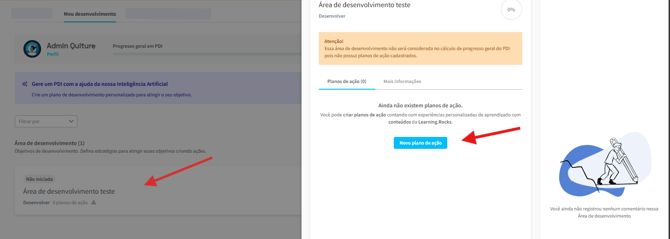 O produto de PDI da Qulture.Rocks permite que você registre áreas de desenvolvimento e defina Ações para alcançar estes objetivos de desenvolvimento.