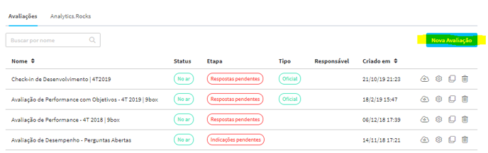 2. Clique no botão de “Nova avaliação”: