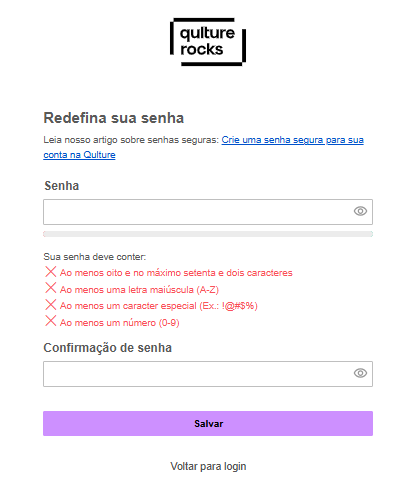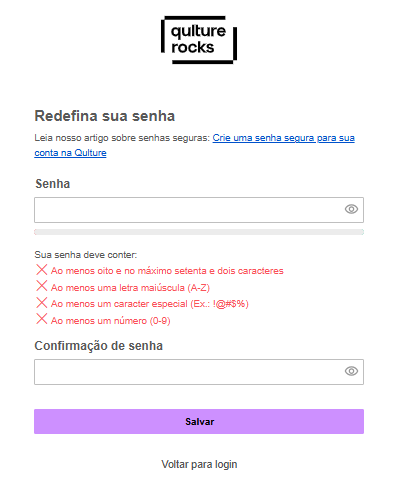 Quando o colaborador acessar a plataforma e inserir a senha padrão (prefixo + 6 primeiros dígitos do CPF + #A1), e clicar em acessar, seria direcionado para uma tela em que terá que criar uma nova senha.