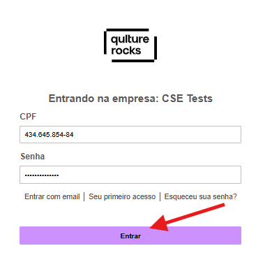 Digite o CPF e senha padrão (prefixo + 6 primeiros dígitos do CPF + #A1)