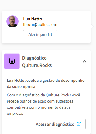 O Diagnóstico está na Home e disponível para todas as empresas, sem que seja necessário alguma ativação.