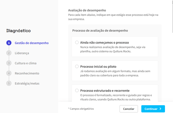 O Diagnóstico é uma ferramenta que ajuda empresas a entenderem seu estado atual de maturidade e receberem um plano de ação para evoluir.
