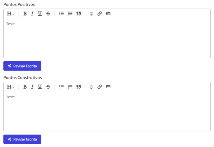 Assim como o assistente da Avaliação de Desempenho, ele analisa o texto que você escreveu e sugere melhorias, mas vai além: também traz uma versão já aprimorada, pronta para copiar e colar no campo de descrição.