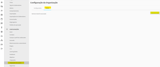 Acesse o menu Organização > Integrações de usuários > Testes.