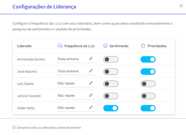 Definir uma frequência para as 1-on-1s personalizada para pessoa do time;