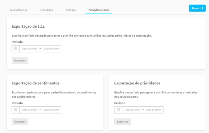Como administradora da plataforma, você consegue extrair informações sobre as três funcionalidades apresentadas anteriormente: (i) 1:1s; (ii) Pulse; (iii) Prioridades, como mostra a figura abaixo: