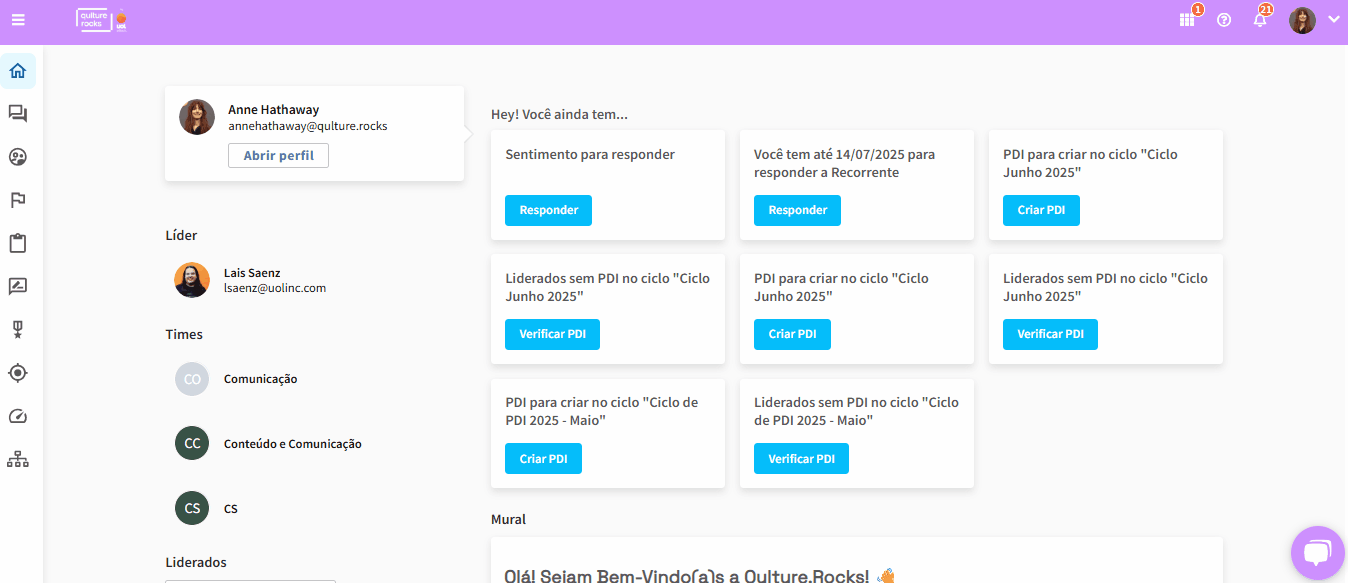 O líder indireto consegue visualizar o comentário junto com o relatório individual caso a navegação por hierarquia esteja ativa.
