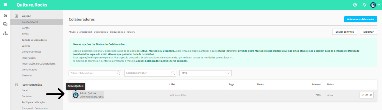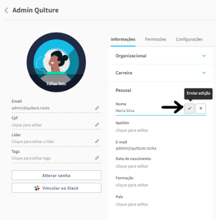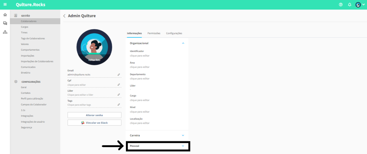 Ao acessar o perfil da pessoa, clique sobre a sessão de informações "Pessoal"