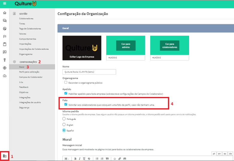 Selecione a opção de "Solicitar aos colaboradores para adicionarem uma foto, caso não tenham uma."