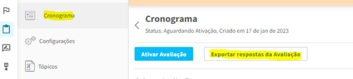 ⚠️ Antes de mudar os relacionamentos, recomendamos que seja feito um export das respostas da Avaliação, clicando em “Exportar respostas da review” em “Cronograma”. Isso é uma medida de segurança, visto que toda a vez que é feita uma alteração nos relacionamentos, você corre o risco de perder algumas respostas.