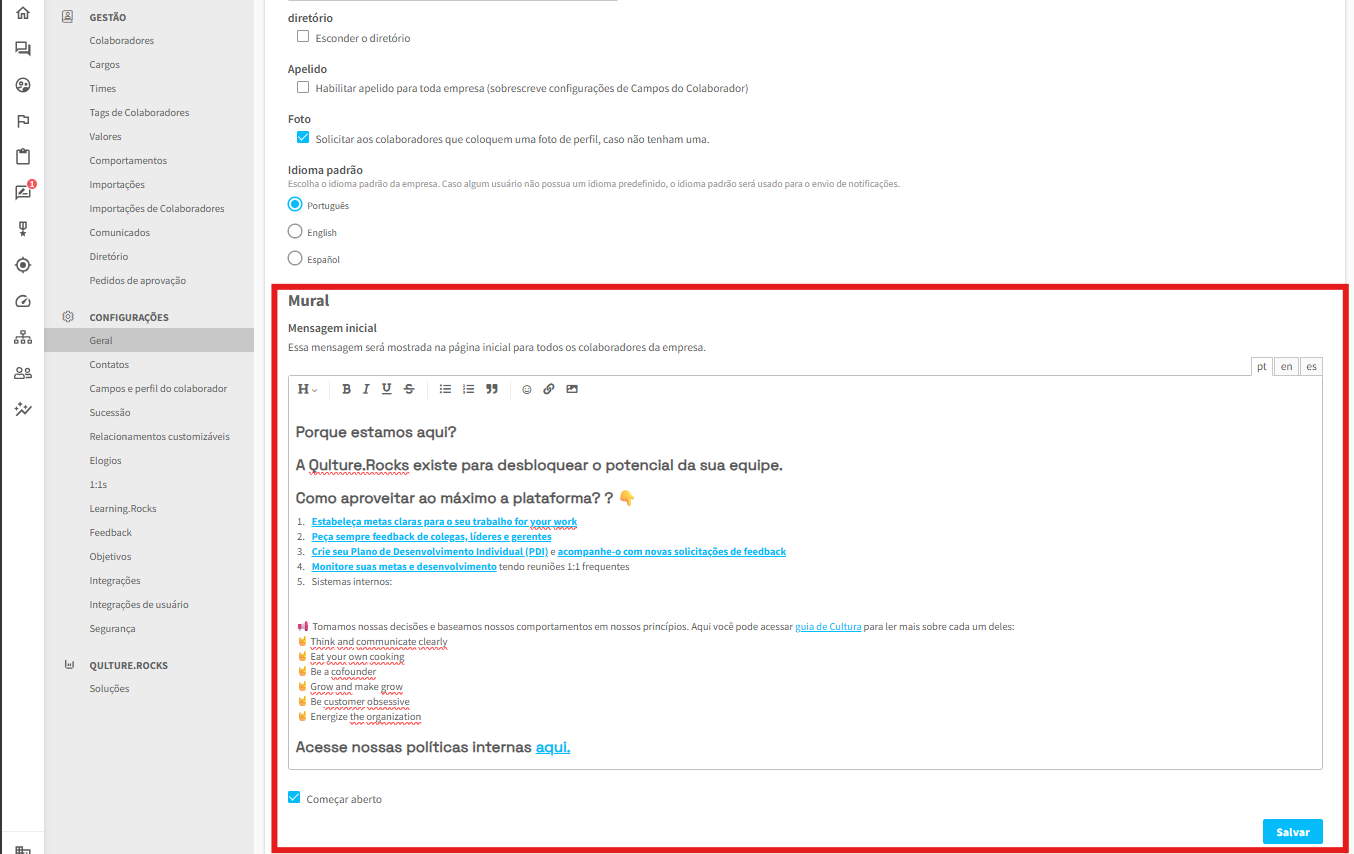 Como criar e editar o Mural de Boas Vindas