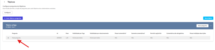 1. Nas configurações de sua avaliação, na aba "Tópicos", acesse uma pergunta clicando no título dela para abrir a edição e depois "Editar Rótulos"
