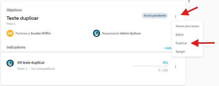 Aprenda a duplicar os objetivos para serem utilizados em outros ciclos de OKRs
