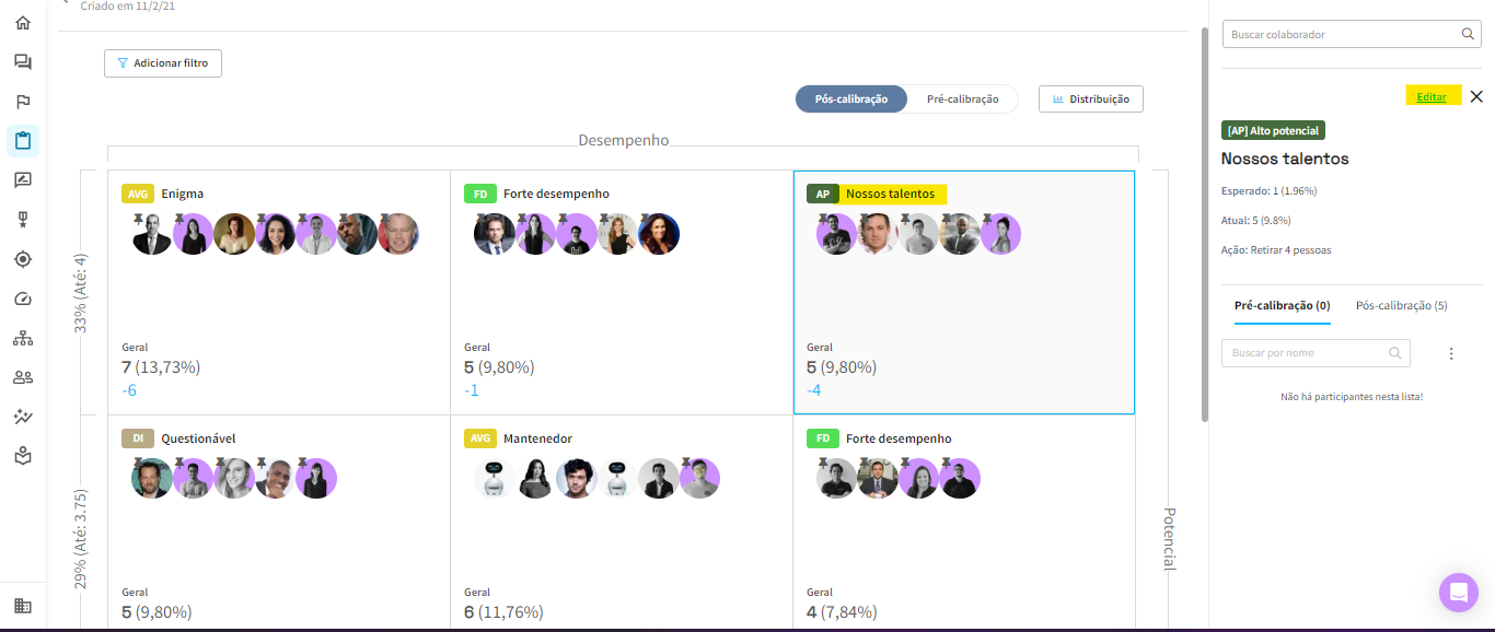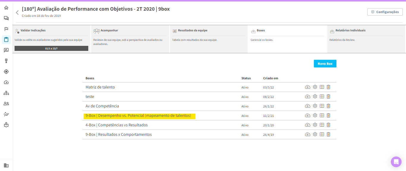 Nesta nova tela você observará todos os Boxes já criados para esta avaliação. Selecione o Boxe que você deseja realizar as edições: