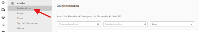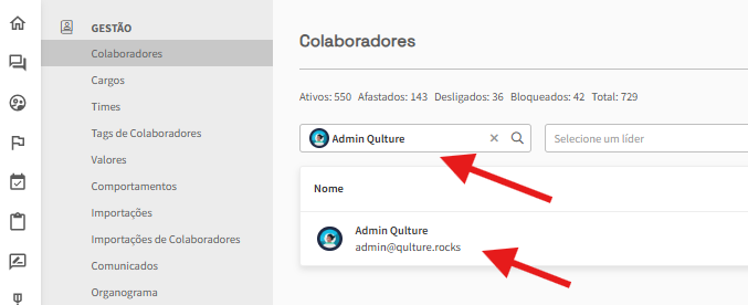 Busque pelo nome ou e-mail do colaborador e clique no nome para abrir o perfil;