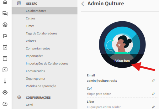 Tanto o colaborador quanto você como Admin podem inserir a foto do perfil de cada usuário no sistema.