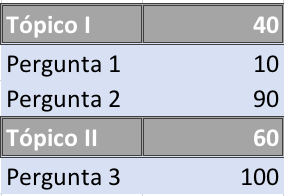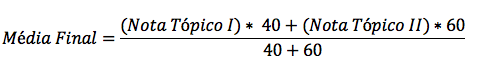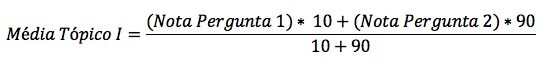 OBS: Se os tópicos possuem peso 1, a média final é simples: soma das notas dos tópicos dividida pelo número de tópicos.
