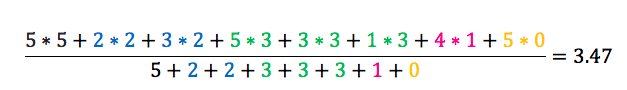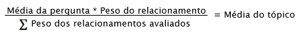 Em seguida, calcula-se a média final da avaliação, ponderando as médias dos tópicos, também com base em seus pesos.