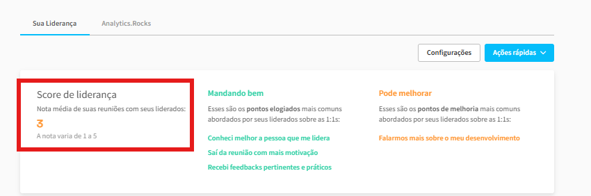 Pensando no desenvolvimento de sua liderança, você pode analisar as avaliações recebidas, de maneira anônima, através da aba "Sua liderança" dentro do produto de 1:1.