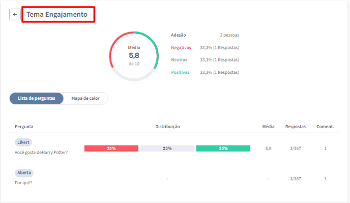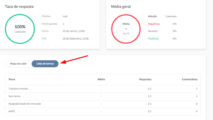 Caso a pergunta tenha formato eNPS, não é possível inserir temas, no artigo "Como analisar