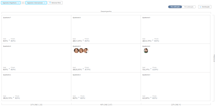 Ao adicionar segmentos no filtro da Box conseguimos visualizar apenas as pessoas que estão presentes naquele segmento e conseguimos visualizar como elas foram avaliadas naquela avaliação.
