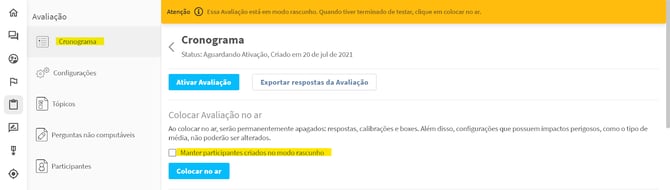 Para fazer isso, precisamos entrar na aba Cronograma, nas configurações da avaliação.