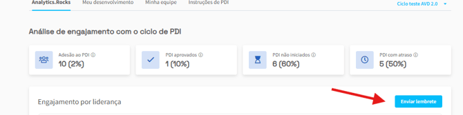 Sempre que existir um ciclo ativo, a plataforma enviará lembretes de PDI automaticamente para os 4 grupos: