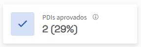 - Aprovação de PDIs: Aqui, você encontra o número absoluto de colaboradores cujos PDIs foram aprovados por seus líderes diretos. A porcentagem de aprovação de PDIs é indicada entre parênteses, calculada em relação ao número de colaboradores que criaram um PDI.