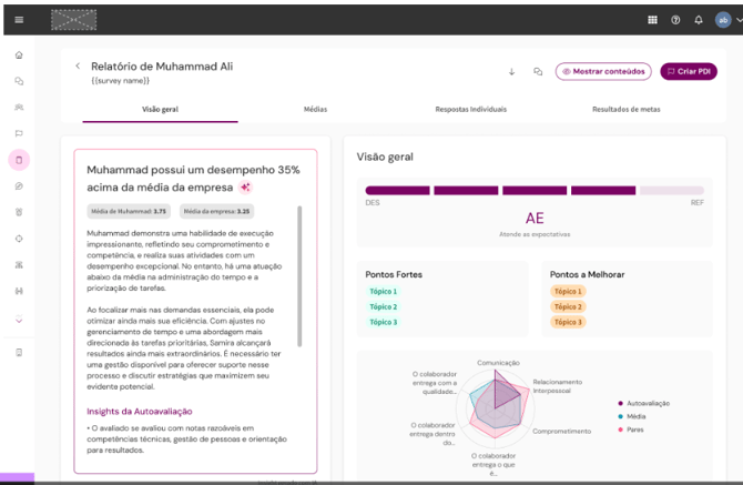 Com essa nova experiência, fica mais fácil entender rapidamente a performance, identificar pontos de desenvolvimento e conduzir conversas de devolutiva mais objetivas.