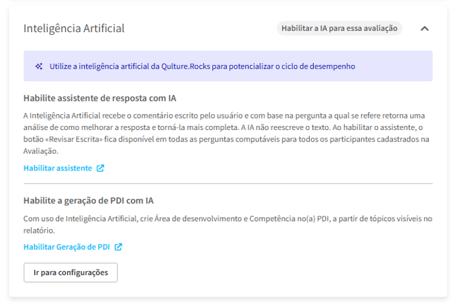 O botão “Habilitar assistente” direciona para a página de configuração, localizada na seção Assistente de resposta com IA.