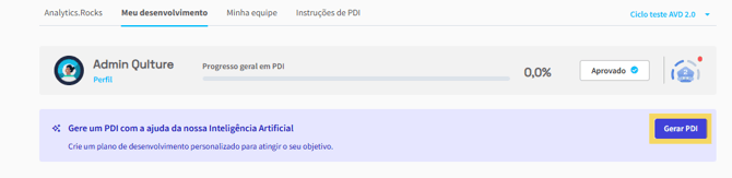 O fluxo de criação do PDI com IA continua o mesmo: