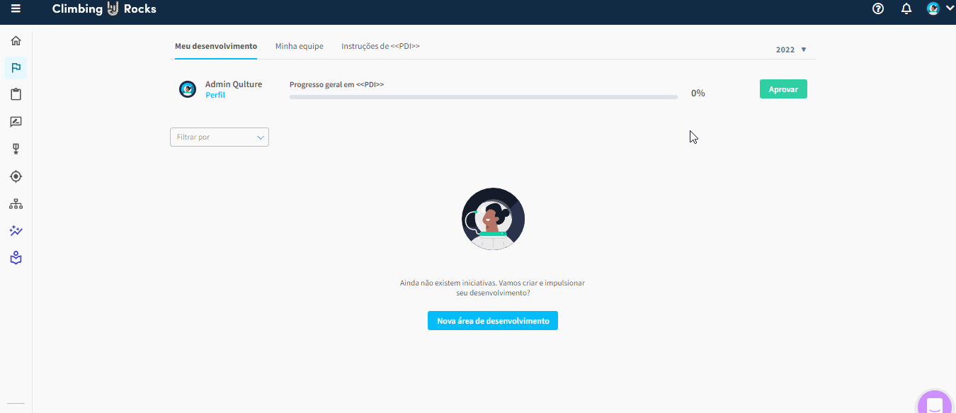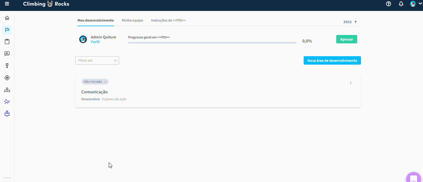 Ao contrário do fluxo tradicionalmente utilizado em OKRs, a aprovação no PDI não tem impacto nas permissões ou em outras ações dentro da plataforma. A aprovação no PDI é apenas uma etapa visual para garantir que você e seu liderado estejam alinhados em relação aos objetivos e planos de desenvolvimento. Não resulta em alterações nas permissões ou desbloqueio de funcionalidades adicionais na plataforma.