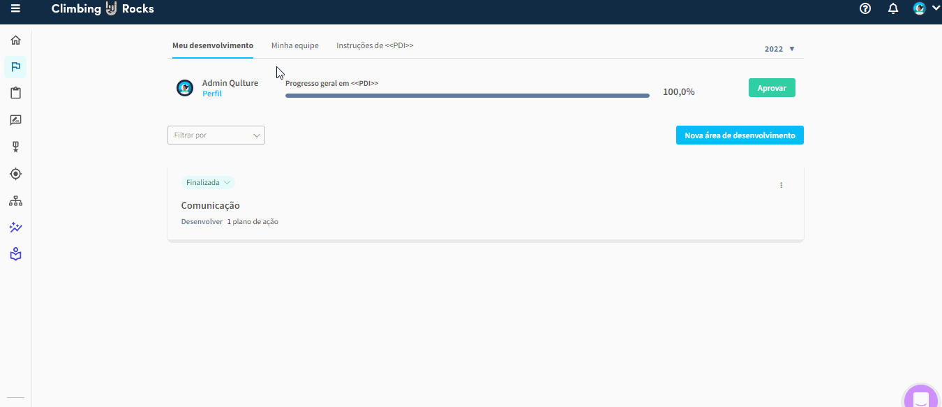 ⚠️ É importante destacar que o progresso do seu PDI será contabilizado à medida que você concluir os planos de ação dentro de cada área de desenvolvimento. Portanto, certifique-se de marcar as ações como concluídas para que o progresso seja atualizado corretamente.