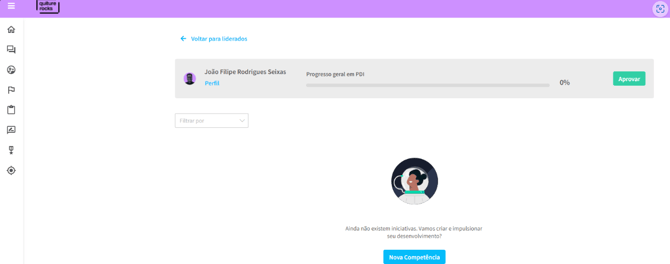 4. Ao selecionar algum colaborador o líder também irá poder sugerir novas áreas de desenvolvimento para seus liderados, basta clicar em "nova competência" um botão azul que fica ao centro da tela;